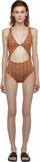 - The classic MCM letters, laurels, and diamonds embellish the entirety of this stretch swimsuit
