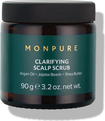 Monpure's Clarifying Scalp Scrub uses biodegradeable jojoba beads to gently exfoliate flakes, build-up and oils from the scalp to support scalp health. It alleviates symptoms of dandruff and psoriasis, rebalances the scalp microbiome and moisturises the scalp-skin with healing shea butter and argan oil. It also primes the hair growth environment by cultivating the health of hair follicles.