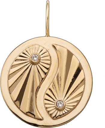 Bezel-set diamonds shine on this textured circular charm that'll lend a burst of contemporary style to any chain.