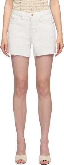 These laid-back, effortlessly cool shorts—made from stretch-kissed denim in a slightly longer silhouette with raw hems—are the perfect base for polished warm-weather looks.