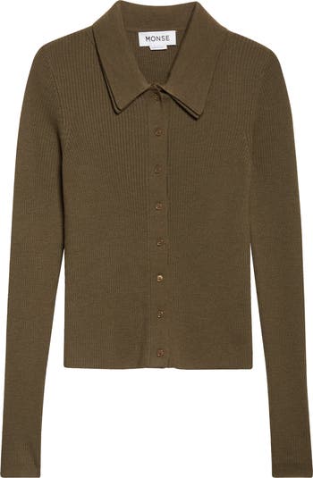 Knit from extrasoft merino wool, this runway-featured cardigan comes prestyled with an attached underlay, achieving the layered look without added bulk. Unbutton the outer layer to reveal cutouts as the draped cardigan slouches off your shoulders.