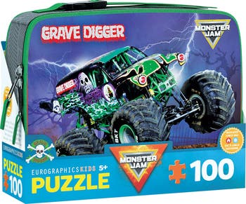 Monster Jam Puzzle & Lunch Box Grave Digger, 100Piece Jigsaw