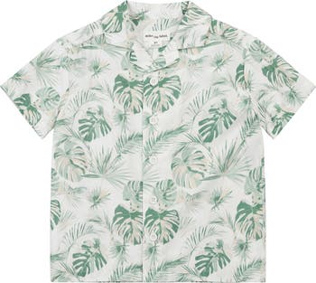 Keep your babe looking kicked-back in a leafy camp shirt mostly made from organic cotton.