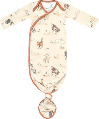Bundle your little bundle in this buttery-soft knotted gown that features snaps down the front for quick changes and fold-over cuffs to prevent scratches.
