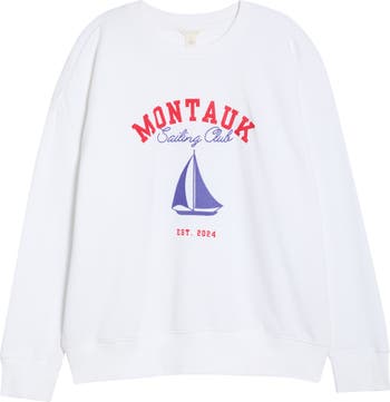 Set sail for comfort in this cotton-rich fleece sweatshirt embroidered with nautical iconography.