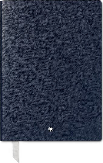 Italian Saffiano leather enriches a notebook featuring lined pages and a built-in ribbon bookmark.