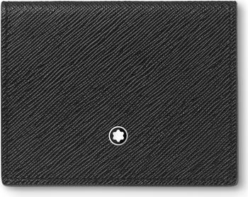 Richly textured Italian leather elevates a slender trifold card case marked with a bit of sharp branding.