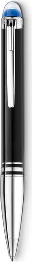 The star of the holiday stocking, in galaxies near and far, this ballpoint pen features a clear blue dome inspired by Earth rising above the lunar horizon. From a collection that celebrates walking among the stars yet is grounded by practicality and superior design, this refined writing instrument comes in a sleek design with a precious resin barrel and platinum-coated forepart and fittings.