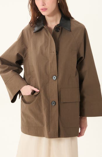 Check off every chore in cozy style wearing a sturdy, cotton-forward barn jacket topped with a rugged faux leather collar.