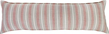 This handsome body pillow made from heavyweight hand-loomed linen alternates thick and thin stripes in a warm color palette.