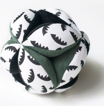 Introduce your baby to tactile and visual exploration with our Sensory Clutch Ball, a beautifully crafted toy designed to engage developing senses from 3 months of age. Featuring signature high-contrast hand-painted graphics and varied textures, this ball captures your baby’s attention while encouraging grasping, clutching, and early motor skills. Inspired by Montessori principles, this “Amish puzzle ball” is made of durable, 100% organic cotton fabric with polyester fill, designed to stay intact while your baby examines it as if it were a puzzle. The segmented design makes it easier for little hands to hold, and its soft, non-rolling construction allows safe exploration without frustration. Hang it above a play gym to stimulate kicking or let your baby practice clutching on the floor. Its charming acorn pattern and premium organic materials make it a keepsake toy and a thoughtful gift for any baby.