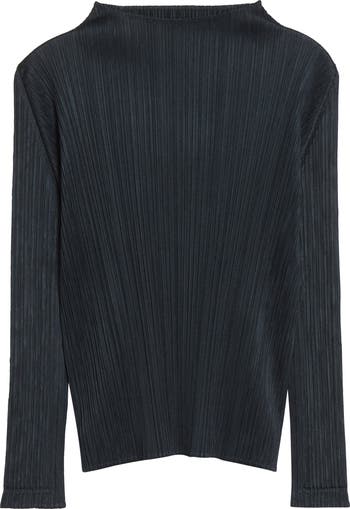 Issey Miyake's signature garment-pleating technique gives soft structure to this wrinkle-resistant, travel-friendly top with an elegant funnel neckline.