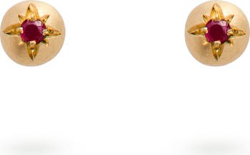 Moon Earrings with Natural Ruby of 0.08 ct. Round shape boule design with hand-engraved star. A style that reinterprets the classic baby studs with a sweet and cool twist to cherish forever. 100% Handmade in Italy.