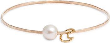 A hammered texture brings a unique finished touch to this Hawaiian-crafted bangle bracelet defined by a moon-shaped charm and freshwater pearl.