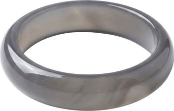 The moon and the sun have a beautiful friendship, and our moon jade bangle tells the story of that friendship. A semi-round purple tinted bangle that radiates a band of reflected light. Natural chalcedony. Made by handwork of carving and polishing.