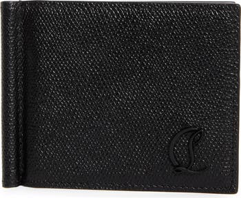 A polished money clip adds function and panache to this bifold wallet with a CL-monogrammed grained-leather exterior and a smooth, signature-red interior.
