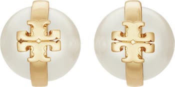 Tory makes her mark on these glossy faux-pearl earrings fronted by gleaming double-T logos.