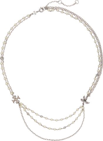 Layers of delicate chain distinguish this polished necklace adorned with crystals, faux pearls and the brand's iconic interlocking 'T' logo.