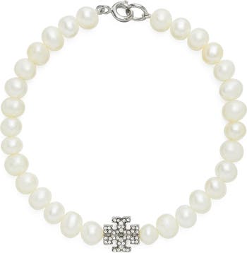 A pavé T-logo charm adds signature style to this freshwater-pearl bracelet designed to be worn both day and night.