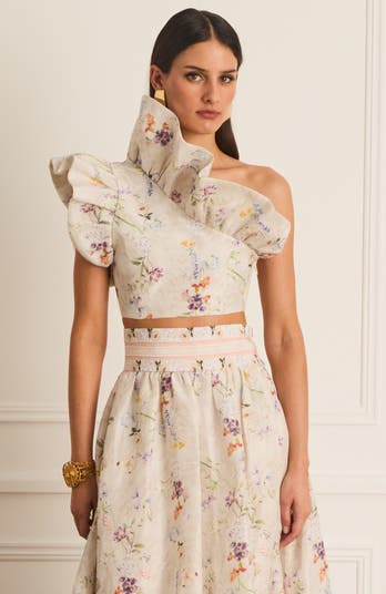 This one-shoulder corset-style top by Aqua Blu Australia features a voluminous ruffle frill that adds a touch of playful sophistication to any ensemble. With boning for a structured fit and a side zipper for ease of wear, the Sophia Corset ensures both style and comfort for any occasion.