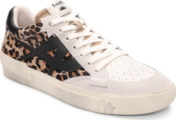 A pre-scuffed sole gives you street cred in a star-decked sneaker crafted from genuine calf hair patterned with bold leopard spots.