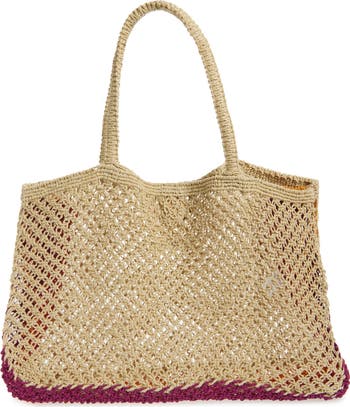 This tote woven from jute with colorblocked sides comes in a bring-it-all-with size and is perfect for beachy vacays, farmer's markets or just bringing an endless-summer verve to your look.