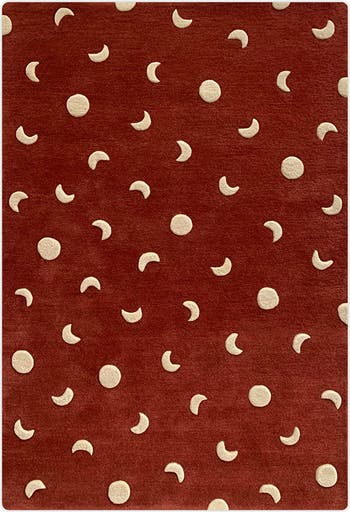 Maison Deux Moons rug, Alternate, color, Brick Red / Gold Print