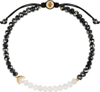 Moonstone Hematite Moon Charm Beaded Bracelet Visualize Light