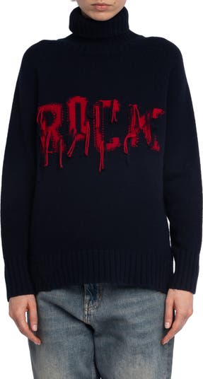 Bring the edge to your cold-weather style with this turtleneck sweater featuring a jacquard 'Rock' design featuring loose-yarn detail.