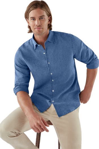 Designed in a modern fit, the Morgan Linen Cotton Shirt is made in a light, breathable cotton/linen blend with a denim appearance. Capturing the spirit of west coast luxury and ease that is the hallmark of Robert Talbott, it's the perfect shirt for spring and summer. It features a hidden button down for convenience and style. Our California Collar is unique design crafted using a special labor-intensive one-piece construction technique forming both the placket and collar from a single piece of cloth. It requires artisanal skills found only in the best factories. The result is a collar with a sleek and elegant roll that won't collapse. The single-needle tailoring and neck piping detail in signature Robert Talbott Gold add a touch of luxury to this already fashionable shirt.