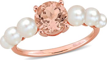 Experience elegance and sophistication with this stunning Morganite and Cultured Freshwater Pearl Ring, crafted in luxurious 10k rose gold. The pear-shaped morganite gemstone exudes a captivating pink hue, complemented by the lustrous white pearls. The combination of morganite and pearls creates a timeless and romantic aesthetic. With its exquisite design and fine craftsmanship, this ring is sure to be a cherished addition to any jewelry collection.