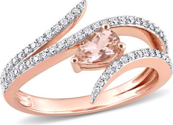 This pretty open wrap ring is crafted in 10-karat rose gold. This gorgeous ring features a pear-cut, prong-set morganite gemstone at the center and round-cut, prong-set dazzling diamonds embellished in a unique pattern. Enhanced with a high polished finish, this modern gemstone and diamond ring is the perfect gift for your beloved. A stunning addition to any jewelry collection.