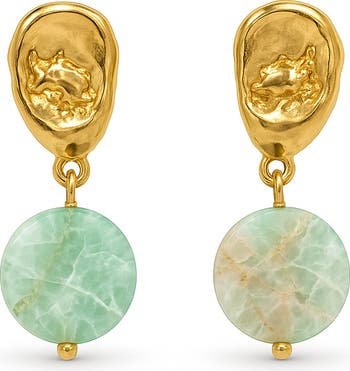 Morganite slabs anchor these sculptural drop earrings topped with molten 22-karat gold-plated metal.