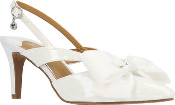 Svelte side cutouts and a voluminous grosgrain bow bring dimension and elegance to a pointy-toe pump featuring a foam-cushioned footbed and tapered heel.