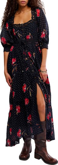 Morning Meadows Floral Lace Trim Maxi Dress
