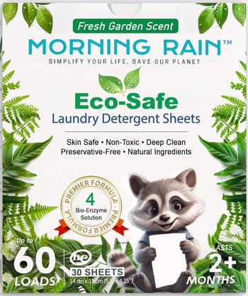 MORNINGRAIN: LAUNDRY DETERGENT SHEETS - FRESH GARDEN SCENT - 30 SHEETS - Enter the future of laundry with our groundbreaking eco-friendly sheets, powered by a unique blend of solid bi-enzymes sourced from the pristine landscapes of Finland. Unlike other brands, we embrace the visible particles of these enzymes as a badge of our commitment to superior cleaning without compromise. We've avoided synthetic preservatives in favor of natural tea tree oil, a choice that not only ensures the stability and effectiveness of our product over time but also pays homage to our dedication to natural purity. THE FRAGRANCE is born from a half-year collaboration with a master perfumer, inspired by the ethereal blend of freshly cut grass, blooming flowers, and the rejuvenating scent of sun-kissed rain in our founder's garden. Named Nature's Breath, this scent encapsulates the essence of nature, offering an olfactory experience that transforms laundry from a chore into a delight. This shift not only challenges the status quo but elevates our laundry sheets to a realm where cleaning power and environmental mindfulness thrive together. With each sheet being thicker, heavier, and packed with natural ingredients, we offer a cleaning experience that surpasses conventional options. Beyond our innovative laundry sheets, our vision extends to transforming all household cleaning products into eco-friendly, highly efficient sheets. By eliminating the water content that dominates liquid cleaners, we aim to reduce carbon emissions, crude oil waste, and the excessive use of storage space, paving the way for a more sustainable world. Our commitment to sustainability is sealed with a patent for biodegradability, making our laundry sheets a beacon for eco-conscious households. MorningRain Eco-Safe Laundry Detergent Sheets - Ingredients from Finland, Natural Scent, Bio-Enzyme Formula, Power Clean, 30 Sheets (Up to 60 Loads) - Non-Toxic, Preservative-Free, Designed in USA