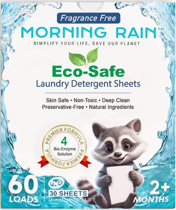 MORNINGRAIN: LAUNDRY DETERGENT SHEETS - UNSCENTED - 30 SHEETS - After a year of careful development with our R&D team, we've crafted a laundry solution that stands apart. Enter the future of laundry with our groundbreaking eco-friendly sheets, powered by a unique blend of solid bi-enzymes sourced from the pristine landscapes of Finland. Unlike other brands, we embrace the visible particles of these enzymes as a badge of our commitment to superior cleaning without compromise. In an industry first, we've avoided synthetic preservatives in favor of natural tea tree oil, a choice that not only ensures the stability and effectiveness of our product over time but also pays homage to our dedication to natural purity. This shift not only challenges the status quo but elevates our laundry sheets to a realm where cleaning power and environmental mindfulness thrive together. With each sheet being thicker, heavier, and packed with natural ingredients, we offer a cleaning experience that surpasses conventional options. Beyond our innovative laundry sheets, our vision extends to transforming all household cleaning products into eco-friendly, highly efficient sheets. By eliminating the water content that dominates liquid cleaners, we aim to reduce carbon emissions, crude oil waste, and the excessive use of storage space, paving the way for a more sustainable world. Our commitment to sustainability is sealed with a patent for biodegradability, making our laundry sheets a beacon for eco-conscious households. Choose our laundry sheets and embrace a cleaner, greener, and more effective way to care for your clothes and our planet. MorningRain Eco Laundry Detergent Sheets - Ingredients from Finland, Unscented, Bio-Enzyme Formula, Power Clean, 30 Sheets (Up to 60 Loads) - Non-Toxic, Preservative-Free, Skin Safe, Designed in USA.
