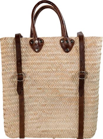 Embrace artisanal elegance with the Moroccan Shopping Basket Backpack, hand-woven from palm by skilled Moroccan artisans and featuring durable leather straps. This versatile backpack is perfect for market trips, beach days, or adding a stylish touch to your daily commute. Each piece showcases intricate craftsmanship, blending traditional techniques with modern functionality. Carry your essentials in a unique, eco-friendly fashion with this beautifully crafted basket backpack.