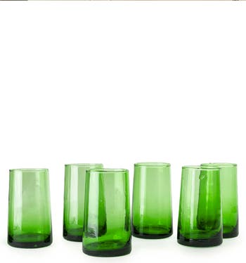 Experience the elegance of the Verve Culture Moroccan Cone Glasses, a set of six handblown by skilled artisans in Morocco using recycled glass. Each glass boasts unique, handcrafted details, making every piece a distinctive addition to your collection. Elevate your gatherings with these eco-friendly, artisanal glasses that beautifully combine sustainability and sophistication.