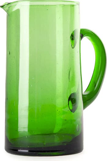 The Moroccan Glass Cone Jugs, handblown by artisans in Morocco using recycled glass, come in a set of six. Perfect for serving water, juices, or cocktails, these jugs pair beautifully with the Moroccan Cone Glasses, adding a touch of elegance to any table setting. Each jug showcases unique, handcrafted details, making them both a functional and stylish addition to your drinkware collection.