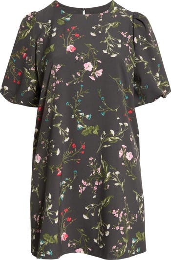 Delicate sprigs of blooms and puffy sleeves bring sweetness to a stem-showing dress that's sure to charm your audience from brunch to cocktail hour and beyond.