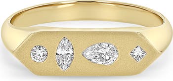 The classic signet ring gets a glamorous upgrade with this polished 14-karat yellow-gold version set with mosaic-style diamonds in a variety of cuts.