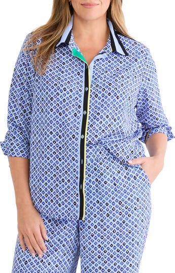 Comfort meets polish on this lively printed shirt framed by dropped shoulders for a relaxed fit and trimmed with bold stripes.