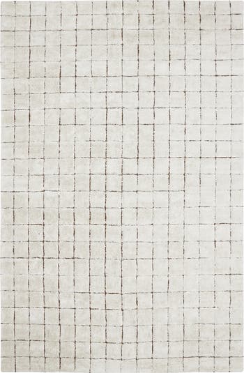 A pattern inspired by vintage ceramic floors is created by the check pattern of this washable rug that allows hints of the contrasting base to show through.