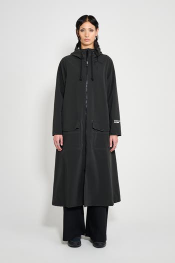 Mosebacke Long Patch is an artisanally made knee-length and a-line-shaped raincoat for women. The sturdy and hard-wearing waterproof fabric is tailored with triple-welded seams, making it impossible for any moisture to seep through. Ease of movement and comfort are achieved with under-arm eyelets and a capped drawstring hood, while patch pockets with flaps ensure that valuables stay safe and dry.