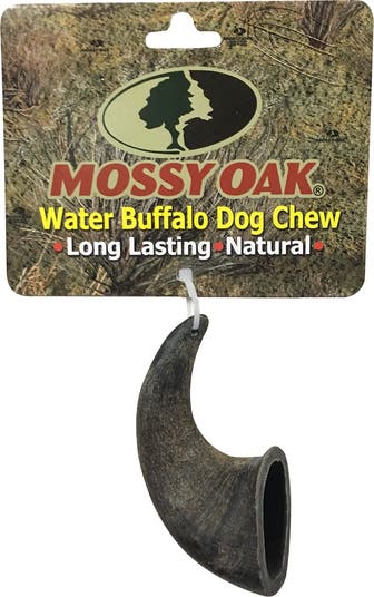 MOSSY OAK: WATER BUFFALO HORN DOG CHEW - SMALL - Water Buffalo Horn Dog Chews will give your best friend weeks to months of satisfying chewing pleasure. Their long-lasting design keeps dogs engaged and entertained, helping to satisfy their natural urge to chew in a healthy way. They are all natural with no added ingredients or preservatives. Because they’re made from a single, simple ingredient, pet parents can feel confident knowing their pups are enjoying a clean, wholesome chew without any unnecessary fillers. Water Buffalo Horns last as long as deer antler at a fraction of the cost. Their tough, durable texture makes them an excellent option for determined chewers who need something that can stand up to hours of use. Tens of thousands of dogs have enjoyed these chews since their introduction a few years ago. Water Buffalo Horns are great for dental health and help scrape away unhealthy plaque and tartar from dog's teeth while providing hours of chewing pleasure that dog's love. As dogs gnaw, the natural abrasive surface helps promote fresher breath and cleaner teeth, supporting better overall oral hygiene. Always provide your pet with plenty of water when using these chews. The "Small" is appropriate for small to medium size dogs. Each horn is crafted with the same commitment to quality and durability that pet families have trusted from QT DOG for decades, ensuring a reliable chew every time. NOTE: Water Buffalo horns are not a food item and do not provide any nutritional benefits, only the satisfying chewing experience that dogs crave. Please supervise your pet when giving it any type of chew.