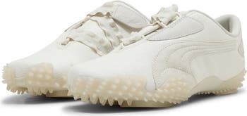 Wrapped in durable herringbone fabric and cinched with with a ribbon of fluttery elastic, this milky-white sneaker still sports the low-slung profile of a surfer shoe kicked up on the lugged tread of a football spike. Its signature hook-and-loop closure system and stitched formstrip swooping along the lateral sidewall add heritage details to the sneakerhead appeal.