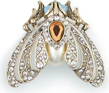 Adorn your coat, blazer or crisp white shirt with this beautiful 18ct gold plated statement brooch. Designed to draw the eye—this art-deco moth is rich in detail, combining opulent sparkle with hand-set crystals & simulated pearls, and antique styling. Ideal for elevating jackets, scarves or lapels with a bold, elegant accent.