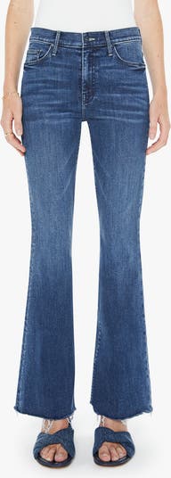 Faded thighs, raw hems and a bootcut silhouette lend a totally casual feel to these slightly stretchy cotton-blend jeans.