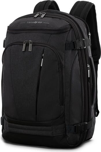 This backpack has tons of pockets strategically placed inside and out so everything has its place. Not only is it easy to organize, but its expandable with external compression straps so you can still fit your favorite backpack in the overhead bin.